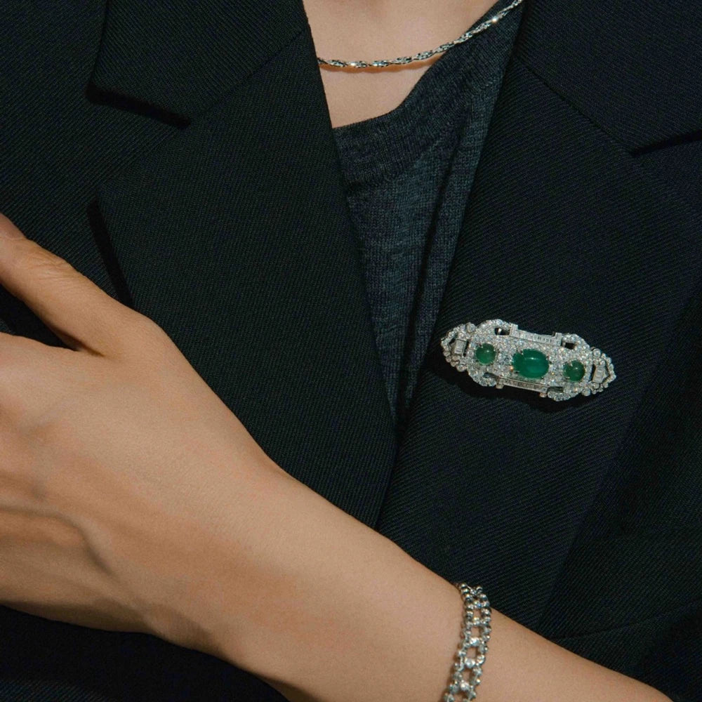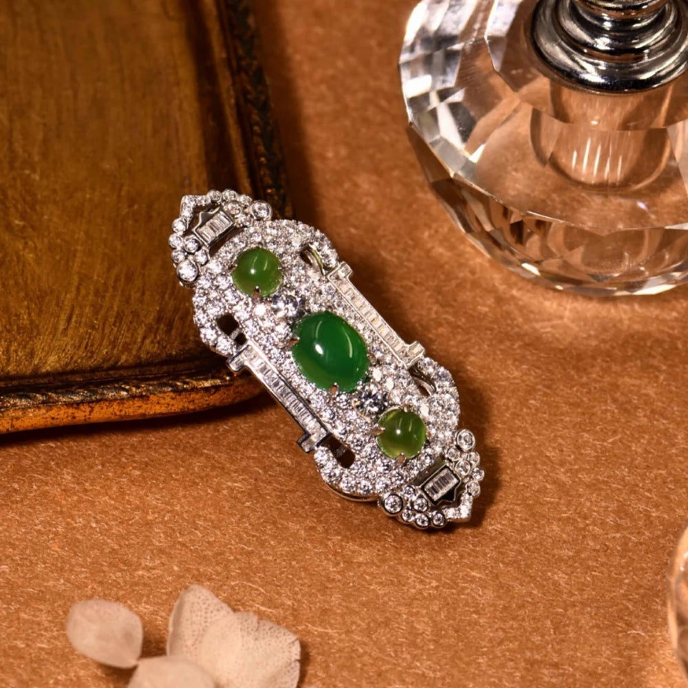 Designed to elevate coats, dresses, and scarves alike, the Jade Sovereign Brooch is a modern heirloom made for those who carry their power with elegance.