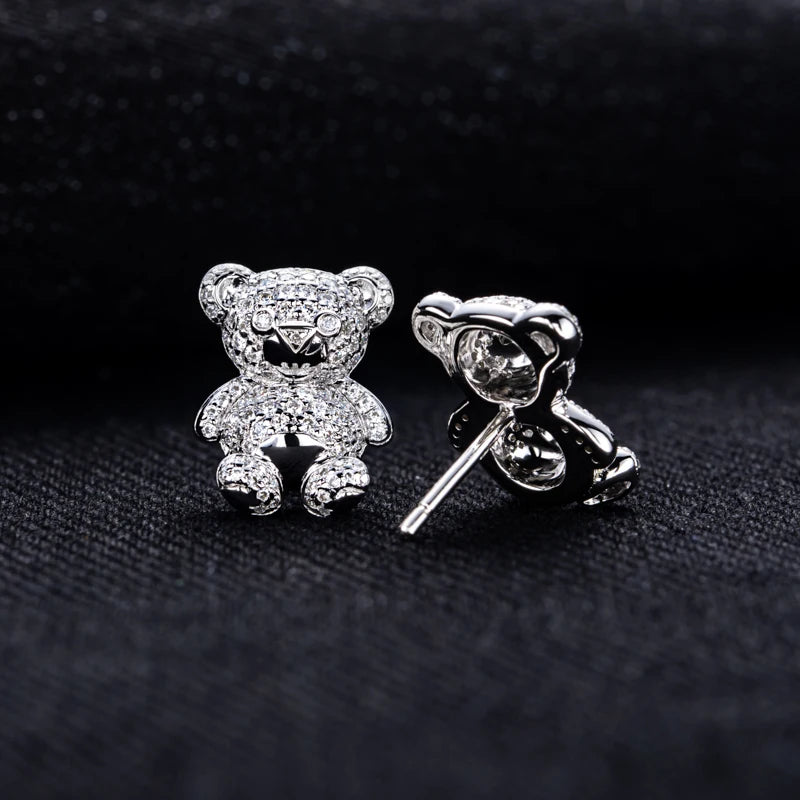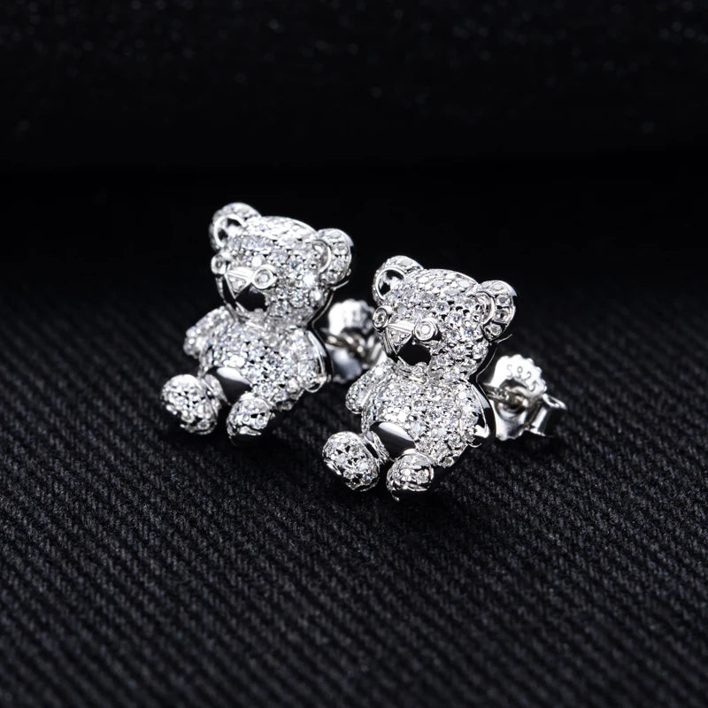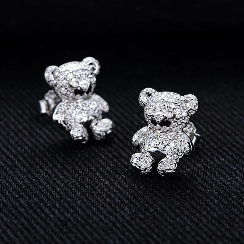 Playful yet irresistibly elegant, the Chérie Bear Studs bring a touch of whimsy to fine craftsmanship. Expertly designed in 925 sterling silver, these charming earrings feature dazzling moissanite stones of D colour and VVS1 clarity, radiating exceptional brilliance with every movement. Their delicate bear-shaped design adds a youthful spirit while maintaining the timeless sophistication of luxury jewellery.