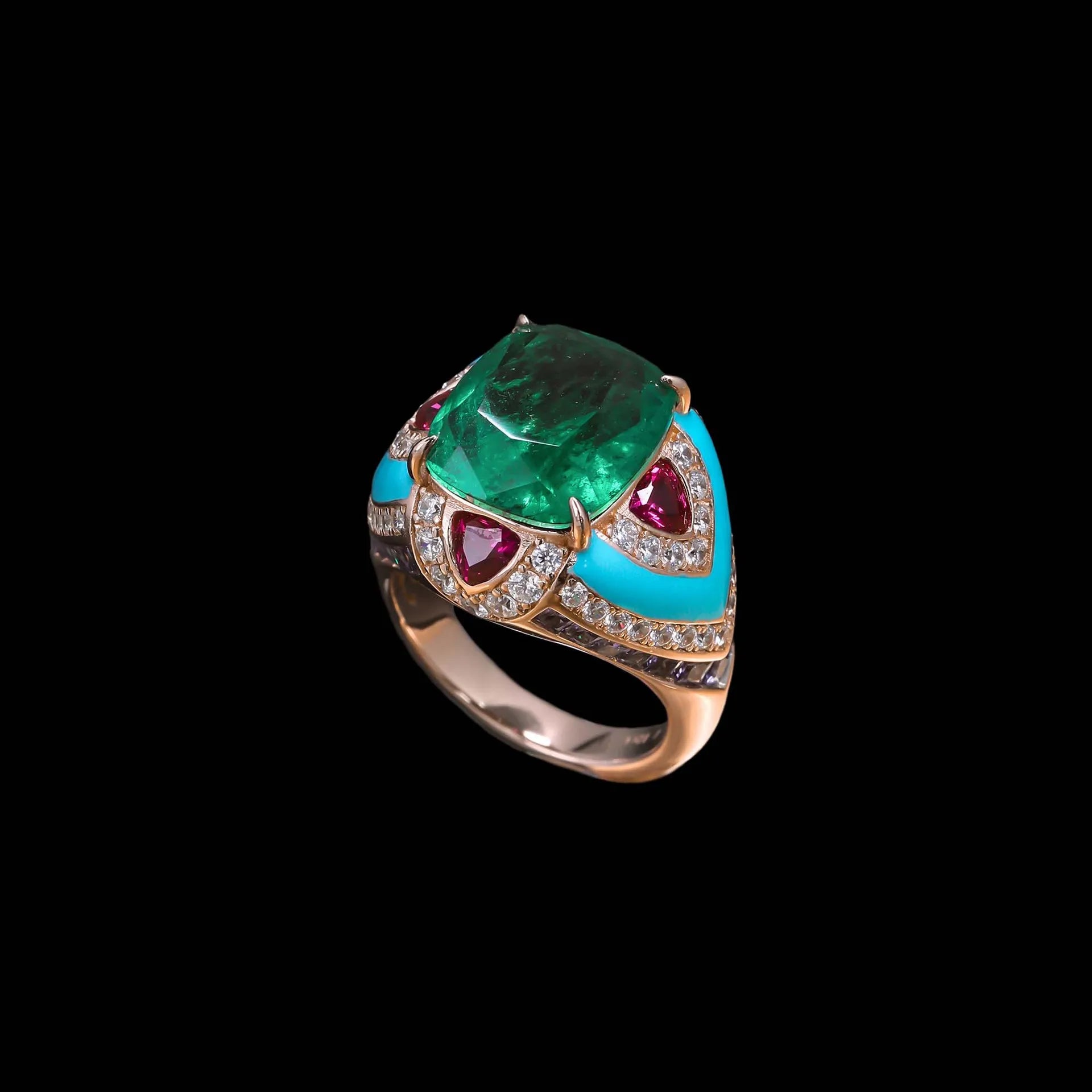 A masterpiece of timeless sophistication, the Jewel of Éternité Ring captures the essence of everlasting beauty and grandeur. At its heart lies a magnificent 12-carat lab sapphire emerald, cut into a luminous cushion shape that reflects light with every graceful movement. Its deep, enchanting hue evokes a sense of majesty and mystery, reminiscent of twilight skies and regal splendour.