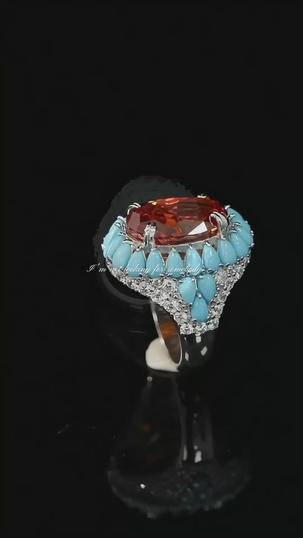 Where the elements of fire and frost converge, a unique magic quietly stirs. The Fire and Frost Ring is a masterpiece of contrasts, a bold cocktail piece that exudes an ancient and otherworldly charm. Its centrepiece, a molten orange lab sapphire, radiates a timeless spark. Encircling it, turquoise stones and glacial lab sapphires shimmer with a cool, steady brilliance, creating a design that is truly one of a kind.